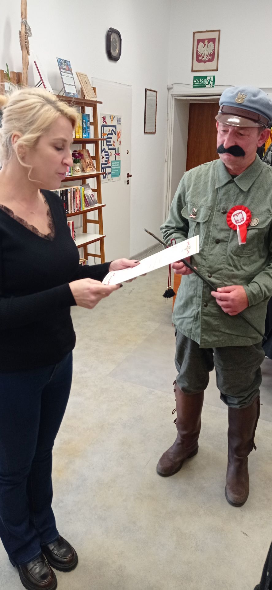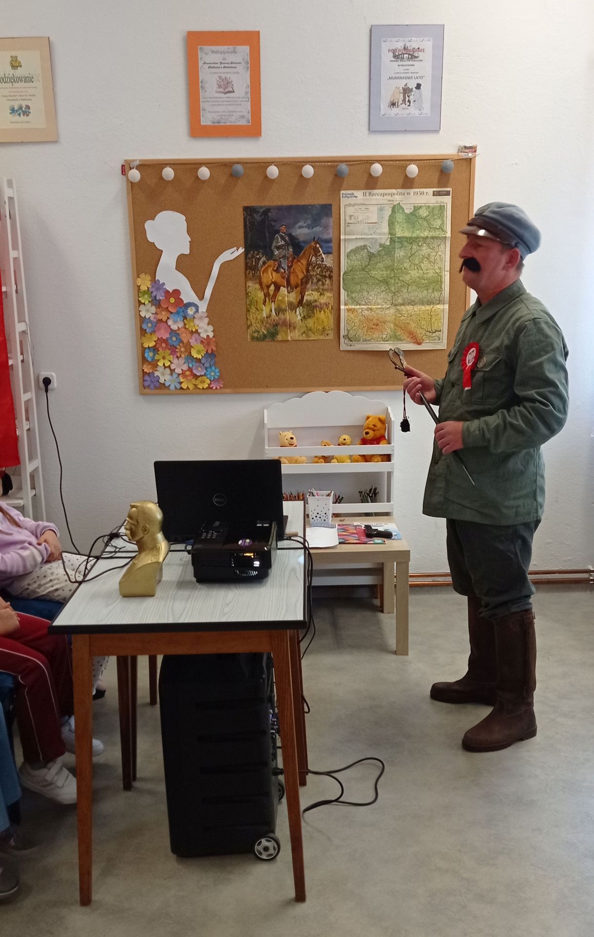 Dnia 6 listopada 2025r. w Gminnej Bibliotece Publicznej w Malechowie została przeprowadzona prawdziwa lekcja patriotyzmu z udziałem bibliotekarza, który wcielił się w postać Józefa Piłsudskiego i zaproszonych wraz z wychowawczyniami uczniów klas I-III SP z Malechowa.