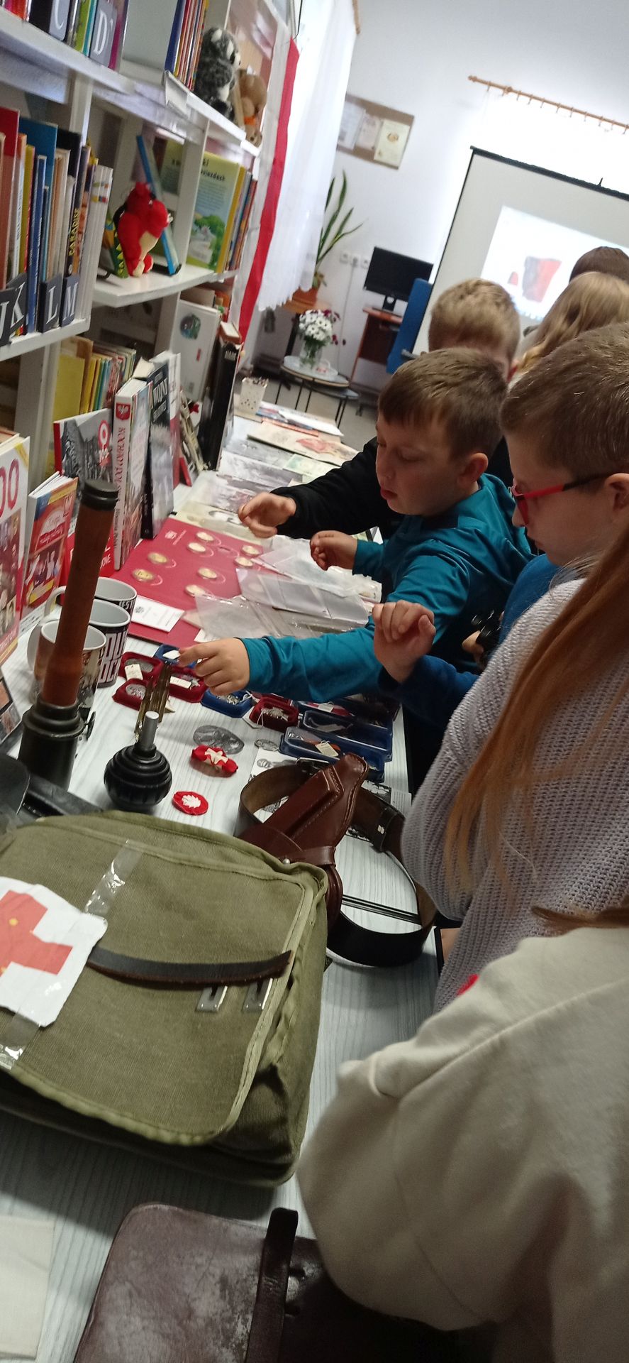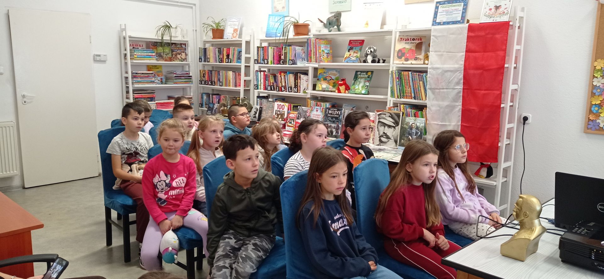 W podniosłym i uroczystym nastroju prowadzący zajęcia bibliotekarz opowiedział im jak ważną rolę w życiu każdego Polaka i narodu polskiego odgrywają patriotyzm, symbole narodowe, poczucie wolności i niepodległości, oraz czym była niewola pod zaborami i jak Polacy walczyli o przetrwanie i zachowanie tożsamości narodowej. Podkreślił dużą rolę Józefa Piłsudskiego i jego Legionów w walce o wolność i niepodległość. Cennym uzupełnieniem nabytej wiedzy był pokaz książek i różnych gadżetów patriotyczno-niepodległościowych.
